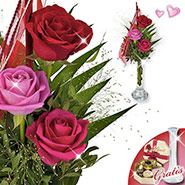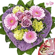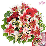 Flower arrangement with vase & Lindt Rose Kiss chocolates