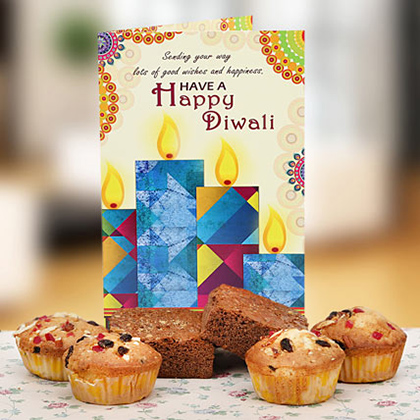 Choco-walnut Brownie 90gms, 4 Vanilla Muffin, Greeting Card
