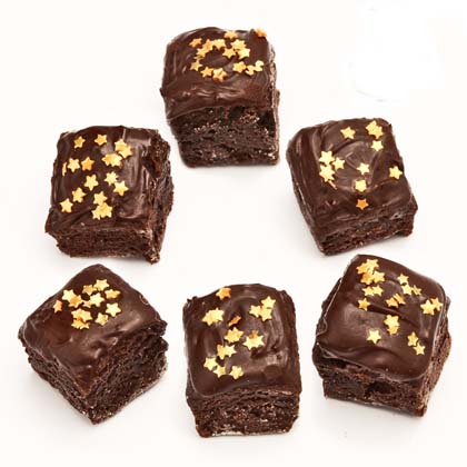 Delicious pack of 18 Eggless small Cake bites with the goodness of chocolate and edible candies decoration in a gift box.Net weight : 100 gms.