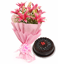 SKU: EXDFNP47314CHGAL125Glass Vase arrangement of 6 Pink carnations and 2 White lilies.