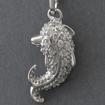 A beautiful combination of silver and american diamonds making a perfect Dolphin pendant for your loved ones. This pendant comes with a silver plated chain in a gift box for your loved ones. An ideal wear for any occasion. Metal : Silver alloy, Polish: Silver Plated, Length Of Chain: 16 - 18 inches.