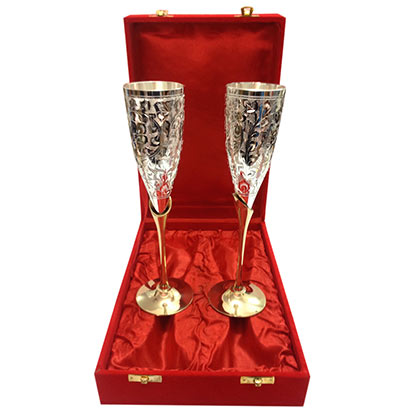 Buy this beautiful set of silver glasses at attractive price. It is an exquisite gift for all occasions and festivals. This wonderful silver ware comes in a red velvet box.