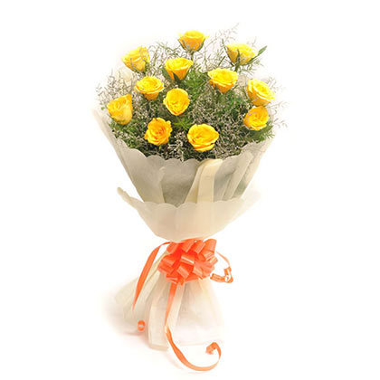 SKU: FD-EXDFNP466GAL16Bunch of 12 Yellow Roses in a paper packing with ribbon bow.