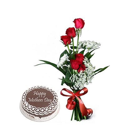 SKU: FD-EXDFNPLW14GAL16Bunch of 6 Red Roses with Chocolate Cake 500gm.