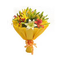 SKU: AFDS10GALPA glass vase arrangement of 6 yelllow roses,6 red carnation and 3 pink asiatic lilies.