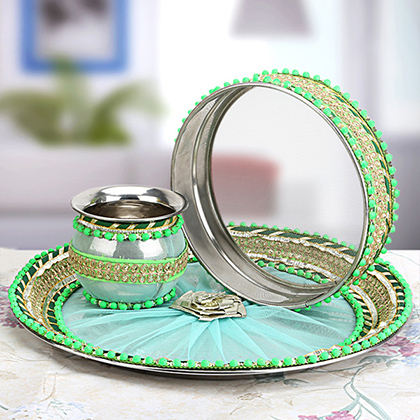 SKU: KCFNPUAE65KC15Sea Green Thali Set(Thali Diameter 12 inches,channi Diameter 7 inches, Vessel Diameter 3.5 inches)