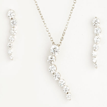 A unique design of american diamonds in silver polished earings and pendant .This comes with a free matching silver polished chain for your loved ones.