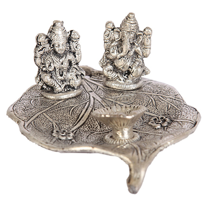 Oxidised peepal leaf ganesh lakshmi designer portray