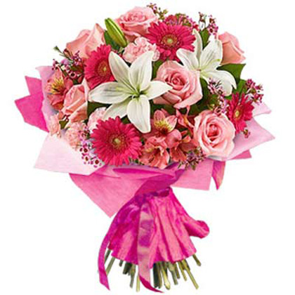 SKU: SAF013GALIPWhen you really want to wow them send these distinctive pink flower bouquet of roses carnations lilies and gerberas. Its a sure way to win them.