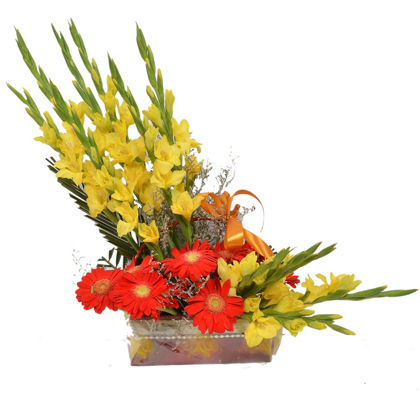 SKU: ADBA0812 Glads and 12 Gerbers in Basket Arrangement.