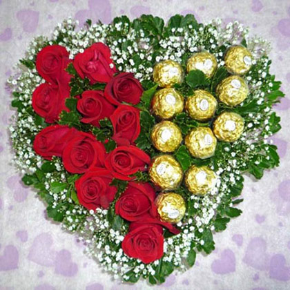 A perfect blend of flowers and chocolates ! You can never go wrong with a captivating flower bouquet of 12 beautiful red roses and 10 delicious ferrero rocher. This elegant arrangement of premium flowers and chocolates makes a truly luxurious gift.