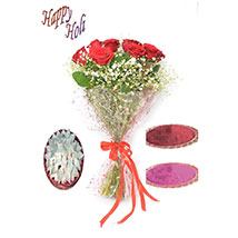 SKU: ADH08GAL23A bunch of 18 Yellow Roses with 1/2 Kg Indian assoted sweets and two small packs of color