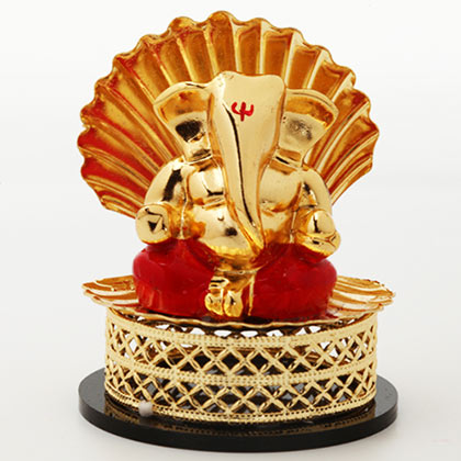 SKU: Rg14shellganeshaGSRGAL68A beautiful Ganesh idol made in ceramic placed in gold plated shell. Size of idol: 1.5". Life time warranty on gold plating and adorned jewellery.