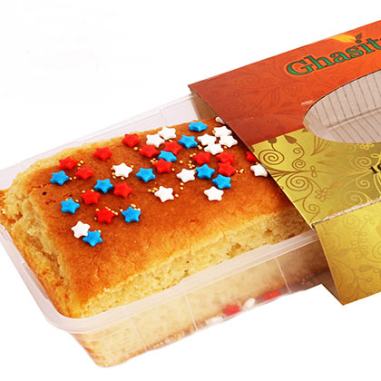 Delicious eggless sponge cake with the goodness of vanilla flavour in a gift box.Net weight : 200 gms.This has been specially packed using Italian technology for an extended shelflife.